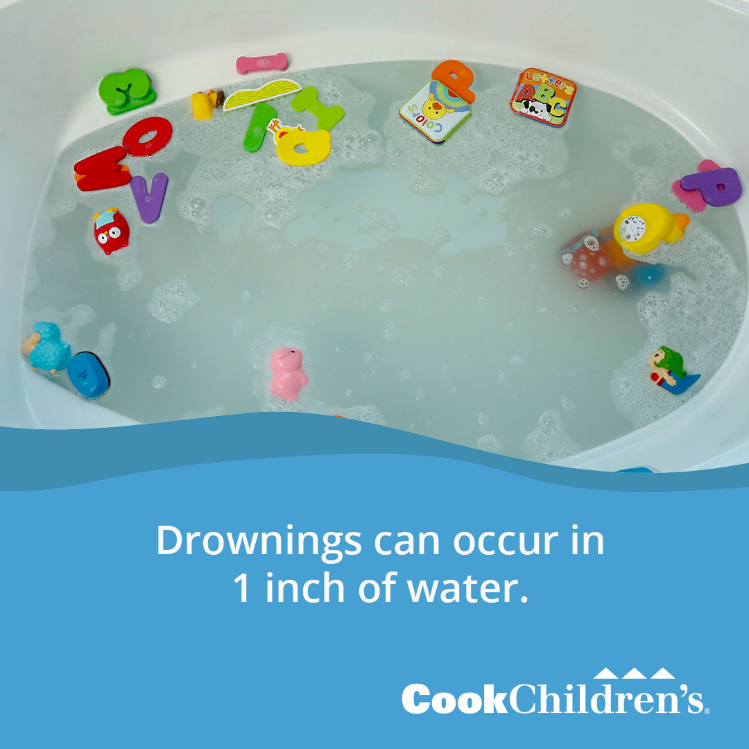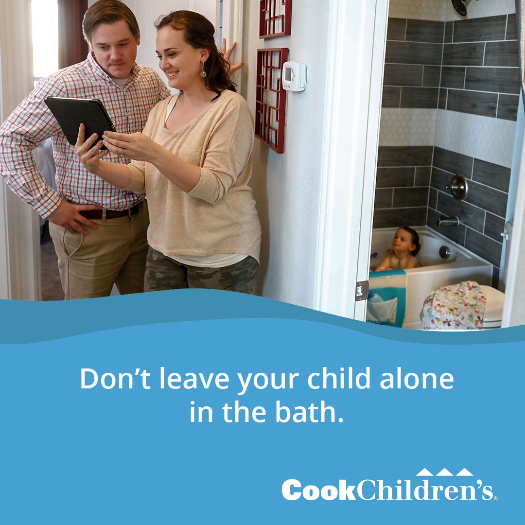 Cook Children’s has seen an increase in bathtub drownings over the past few years and we want to help your children stay safe. It only takes a second for a child to slip under water. Often times, babies and toddlers are top-heavy and can’t pull themselves up.
